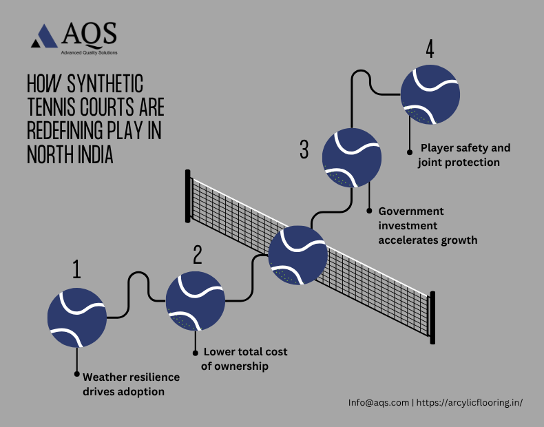 Northern India is moving to synthetic tennis court flooring due to various connected reasons that make them a good option. These newer courts tackle regional issues and support the growing tennis community.
