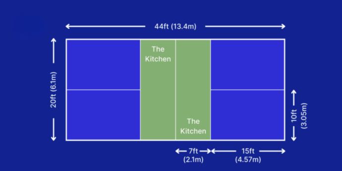 Non-Volley Zone (Kitchen): 2.13m (7ft) from the net
